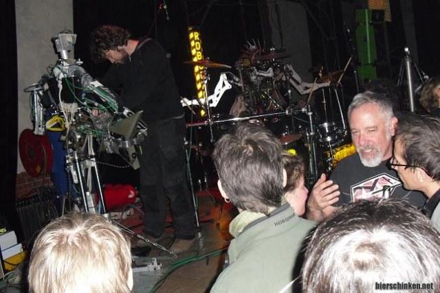 Dann der große Augenblick. Robocross, die Roboterband! Also normales Schlagzeug, normale Gitarre mit gutem Sound, und dahinter Roboter die die Instrumente tatsächlich ganz normal spielen!