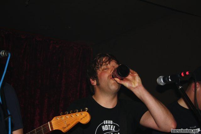 Diese Band bildet also die perfekte Symbiose aus Spaß, Nachdenken und Bier trinken. Das schlägt hier mal wieder mit 2,80 zu Buche für'n 0,33 Astra. Pfui! Lennart reißt irgendwann 'ne Saite. Pipipause für mich und als ich zurück komme, hatters immer noch nicht geschafft. Dafür wurden die Ärzte mit 'Kamelralley' angespielt. Großartig! Und Larry spielt einfach mit fünf Saiten weiter. Höhö.
