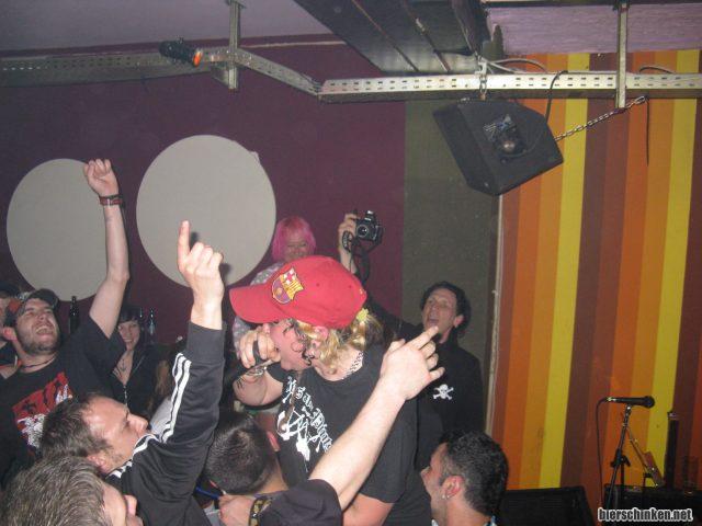Und auch das allerletzte Stück des Auftrittes überzeugt auf ganzer Linie, Pimen wird gar auf Händen getragen, während sie das Coverstück dieser spanischen Hardcore-Band vorträgt. Mittlerweile weiß ich dank Maks' Recherche auch, was es ist: "Mano de hierro guante de seda" von "Habeas Corpus". Geiler Song.