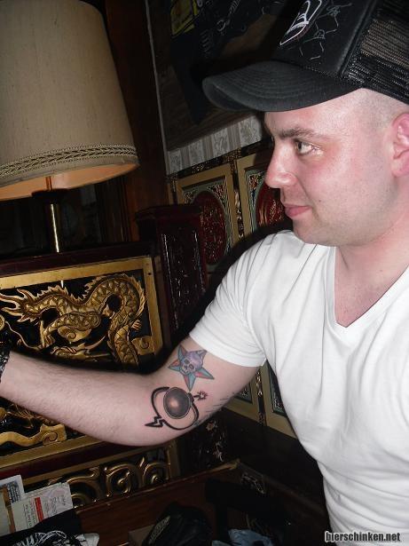 Hier Tourbegleitung. Hat das Logo eintätowiert und auf der Hinfahrt mit dem Sänger, Bronski, wohl super Diskussionen über Bio oder nicht Bio.