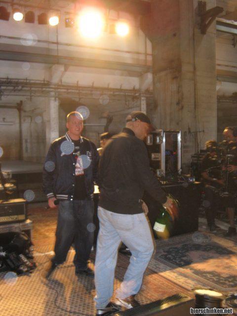 Das eigentliche Highlight wurde sich eh für den Schluss aufbewahrt. Plötzlich stürmen, Tarek, Maxim und Nico nach vorne, beschütten uns mit einer ordentlichen Sekt-Dusche und übernehmen die Mikrofone - großartig! Langsam offenbaren sich immer mehr Details des Sendungs-Konzeptes - hier also in Form einer Kollaboration zweier der auftretenden Acts...