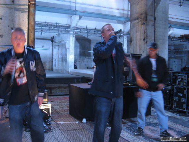 Gemeinsam wird "Taxi Taxi" dargeboten, ein auch eher unbekanntes Stück von K.I.Z. - schon länger erhältlich auf irgendner Compilation. Und wir dachten tatsächlich, das wär noch ein neues Stück. Höhö. Egal. Ziemlicher Hit, auf jeden Fall! Und gemeinsam mit Atari Teenage Riot klingts nochmal ne ordentliche Spur dynamischer.