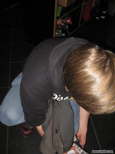 Mit nur wenig Verspätung eingetroffen: Alexej und Maja, die die ehrenvolle Aufgabe haben, heute Flyer für Gunter Gabriel zu verteilen. Dass diese stattdessen auf dem Boden landen - naja, passiert.