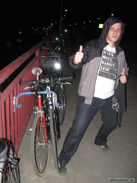 Anschließend sollen wohl noch "Cowboys On Dope" spielen, auch wenn sich dessen keiner sicher ist. Unsere Truppe hält es aber nicht wirklich auf ihren Plätzen, und da es in der Hafenliebe kein alkoholfreies Bier gibt, hab ich auch nicht wirklich Bock noch länger zu bleiben. Außerdem sind hier zu viele Studenten, wie Ulf beim Blick auf die vielen Fahrräder feststellt, die mittlerweile oben auf der Kanalbrücke geparkt wurden.