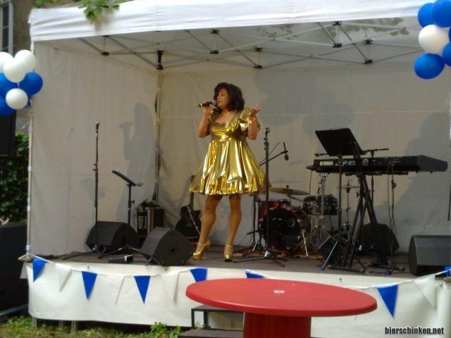 ...mir bietet sich aber jetzt erstmal die Gelegenheit Kiki Cessler zu sehen. Yeah! Hätte ich bei diesem Kleid jedenfalls erwartet. Aber das war einfach nicht lustig! Beim ersten Stück merkt sie, dass es nicht ankommt und bittet um Stück zwei. Ein Roger Cicero Cover wo sie aber den Text vergisst. Wir entscheiden uns schnell raus zu gehen um noch 'ne Wurst zu essen. Gegen Geld.