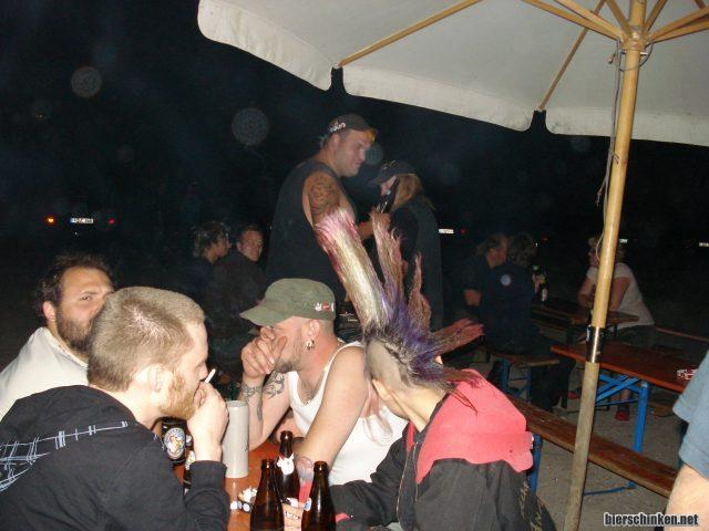 Draußen ist übrigens immer Biergarten in der Ballonfabrik. Bier kostet 1,50 Euro, das kann sich sehr gut sehen lassen. Die stadtbekannten Panks and Skins united alta sind natürlich alle anwesend. Aber auch "normale" Menschen treiben sich rum. Sympathisch!