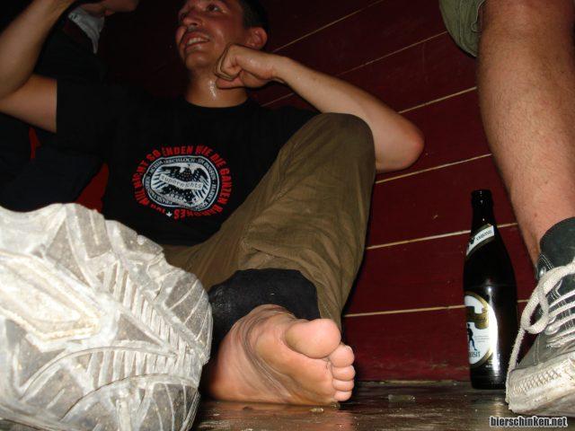 Dann passiert was. Und zwar ohne Absicht. Er knickt einfach um. Nichtmal im Pogo. Einfach so. Und er kann nicht mehr aufstehen. Dafür hat er ein Supernichtsshirt an. Aber er kann wirklich nicht mehr auftreten. Watt machen!?