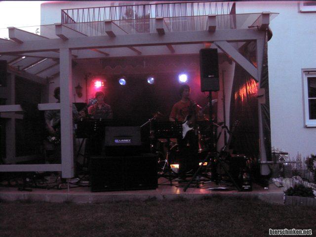 Noch ein Bild von der gesamten Combo, die wirklich von Mal zu Mal immer besser wird. Am Schluss werden dann noch die Geggen Gaggas gecovert, aber dann muss der Strom ausgemacht werden, da das zu laut wird. Hm. Und jetzt? Nicht nach Hause. Ich bekomme noch 2 Schlafplätze angeboten.
