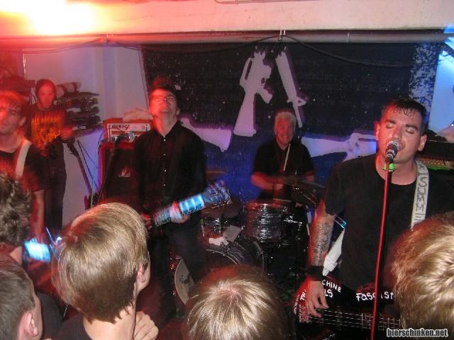 Begonnen wird ganz souverän mit "Turncoat" und dieser Song reicht schon aus, um die Meute zum Springen zu bringen. Auch sonst geile Stücke, wobei ich mir ein wenig mehr Abweichung von ner "Standard-Setlist" gewünscht hätte, denn genau danach klingt die Zusammenstellung. Egal, klappt, und gerade die Mitgrölstücke funktionieren wohl nirgends besser als in einer 100-Mann-Garage.