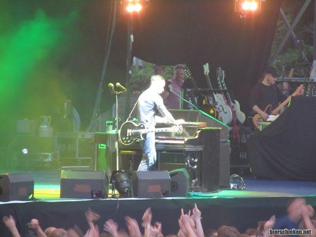 Ansagentechnisch wie gewohnt eher mau, dafür spielt man sich halt sehr solide durchs Set bis hierher. Dann begrüßt Arnim uns mit folgender Lyrik: 'Berlin, es ist zu jubeln, eure Jungs sind da!". Ok, machen die anderen für mich mit. Danke. Und dann kommt der Teil wo auch ich noch was lerne, nämlich, dass auf 'Boombox' doch ein paar geile Nummern drauf sind, wie das jetzt gespielte 'you're a kind girl'. Ja, genau das mit der geilen Porno-Orgel! Diese darf dann Peter heute bedienen.