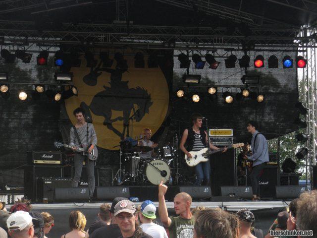 Derweil auf der Bühne: MODERN PETS! Letztens erst in Schwerte gesehen. 77er Punk-Rock'n'Roll-Garage-Krams. Musik, mit der ich nur bedingt was anfangen kann - ist zwar ganz nett und spielen können die Jungs auch, aber mir gibt das nicht viel. Aber wer auf so ne Musik steht, dürfte an der Band derzeit wohl nicht vorbeikommen...