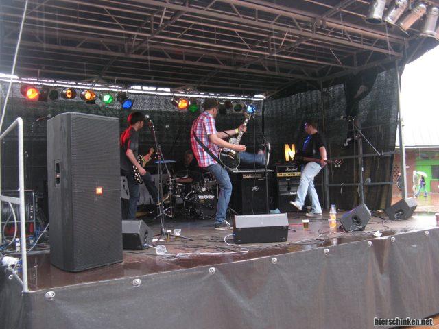 Jau. Guter Auftritt. Publikum klatscht und singt zwischendurch mit und läuft sogar bereitwillig zur Bühne, als ein paar Flyer für äh nächste Woche oder so verteilt werden. So, und nun? Zeit überbrücken bis zur nächsten Band? Denkste! Das wird einem direkt abgenommen.