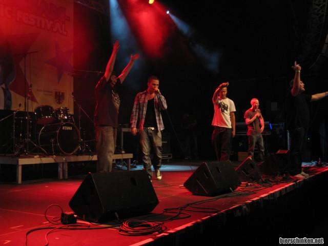 Kommen wir nun zum Highlight des Abends. Das sollten eigentlich Nuke Strike werden, die aber Jobbedingt absagen mussten - der mehr als "würdige" Ersatz nennt sich SEX MIT AFFEN! Applaus für diesen wunderschönen Namen. HipHop-Crew mit diversen Räppern, die sich fleißig gegenseitig die Mikros weiterreichen.