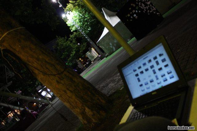 Nicht nur W-LAN gibt es hier kostenlos, von den Bäumen hängen auch überall herrenlose Verlängerungskabel, die nur darauf warten, von deutschen Touristen genutzt zu werden. Strom abschalten nach Festivalende? Nicht in Schweden. Zum Glück hatte ich zufällig den Laptop dabei, um mir die letzten Stunden mit sinnlosem Unfug um die Ohren zu schlagen. Aber keine fünf Minuten später hatte ich schon die ersten besoffenen Schweden an der Backe. Zum Glück spricht hier wirklich jeder Englisch, da können sich die Deutschen noch 'ne gute Scheibe von abschneiden. Und die Franzosen. Aber die wurden 30 Minuten zuvor schon genug gedemütigt.