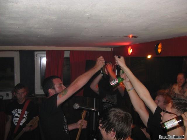 Jay stellt sogar nach dem Auftritt fest, dass dies der beste der bisherigen Tour war - ob das einfach nur nachwirkende Euphorie war oder nicht, ernst gemeint wars in dem Moment auf jeden Fall - nach diesem Gig kein Wunder! Das Bier spritzt und Nothington zeigen ordentlich Spielfreude.