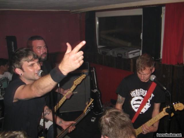Oh, Ryan darf auch mal ans Mikrofon. Mit Grüßen an den Barmann, äh, Barjungen, der ihm wohl bei der Tour mit Spanish Gamble schon einige tiefe Gläser reichen durfte. Schon geil wie der ganze Laden inklusive Personal fleißig diese Musik abfeiert...
