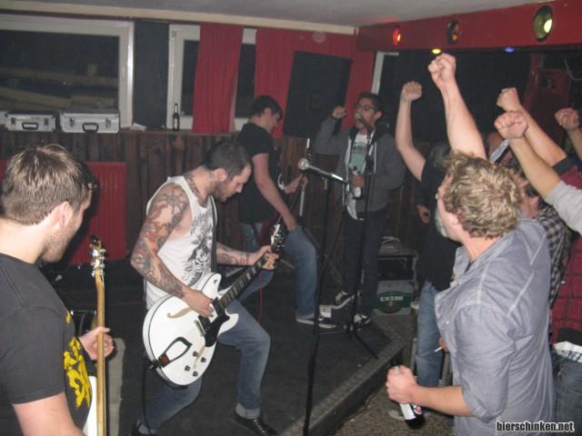 Aber, äh, geil! Der Laden is sympathisch, nicht zu groß und nicht zu klein, Eintritt kostet schmale 5 Euro und der Koch besorgt mir sogar alkoholfreies Bier. Yeah! Und ALL ABOARD! sind hier tatsächlich keine Unbekannten! Vor der Bühne bildet sich rasch ein ziemlicher Tumult, als die Boys los legen, und das Publikum erweist sich als erstaunlich textsicher. Geil!