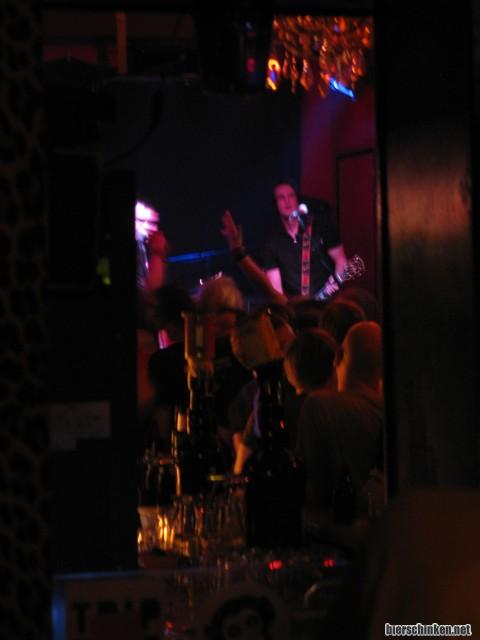 "Gefühlt" wären dann wohl auch meine Ausführungen zu der Stimmung da vor der Bühne, aber gemessen an dem was man von hier hinten sieht, geht da ordentlich die Post ab, und der Laden schreit sich artig durchs Programm. Crowdsurfer haben Mühe, nicht über die Theke zu kippen und bereits jetzt kommt Kundschaft an den Merchstand, um mal ein trockenes T-Shirt für zwischendurch zu erwerben.