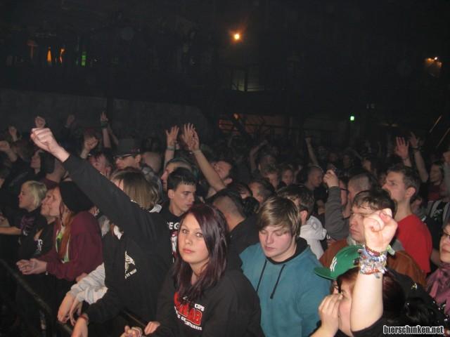 Publikum. Mittlerweile hat sich die Halle amtlich gefüllt, gut 1500 Leute sollen wohl heute den Weg in die Turbinenhalle finden. Ja, der Auftritt wie gesagt souverän, aber langsam wird es echt mal Zeit, dass ich die Band auch mal in nem kleinen Club sehe...