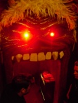 Nach der Darbietung der Blackmailers wollen wir nach draußen um frische Luft zu schnappen, doch wer raus will kommt wohl erstmal nicht mehr rein und so halten wir uns im Treppenaufgang direkt neben dem TikiMonster auf.