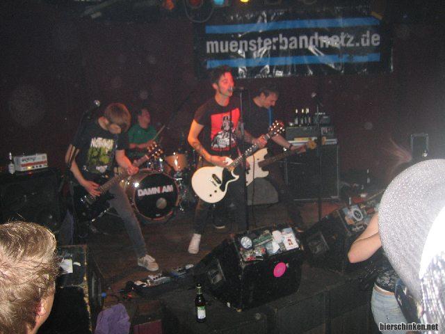 So insgesamt betrachtet gehts hier gut nach vorne. In Münster auch ganz gut bekannt, glaube ich. Ist jedenfalls ne Menge Publikum da und einige können sogar mitsingen. Es wird sich auch artig bedankt dafür, und dafür dass wir alle nicht bei Waterdown sondern hier sind.