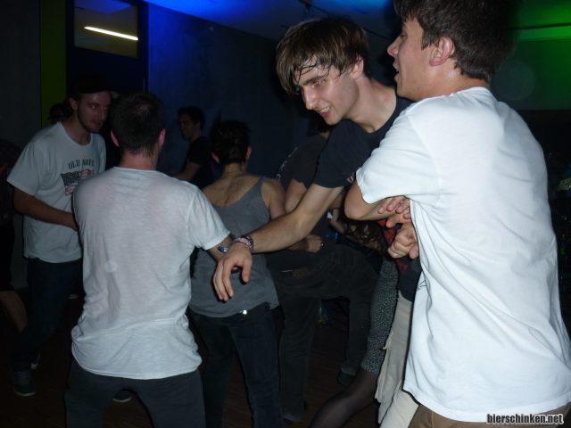 Jo, die Anwesenden rasten gut aus. Gerne wieder, vielleicht dürfen wir ja mal nach Verona mitkommen! So muss Punkrock klingen. Als noch irgendein Prodigy-Lied (keine Ahnung welches, da kenn ich mich nicht aus) mit Flöte (!!) gecovert wird, gibt es gar kein Halten mehr.