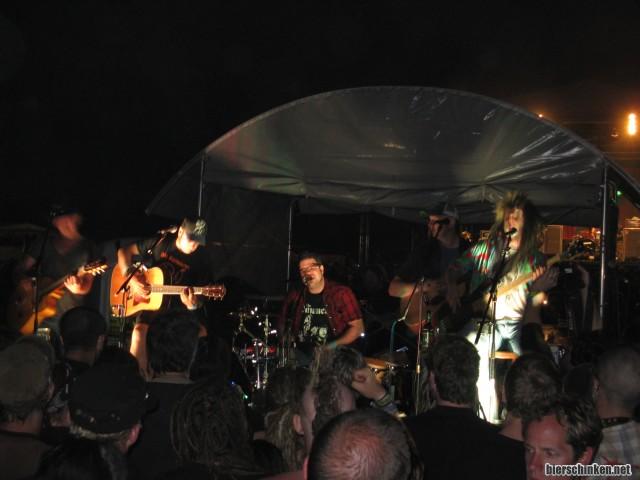 Der Ententanz und Wizos "Quadrat im Kreis" darf natürlich auch nicht fehlen, aber das absolute Highlight: "Fear of the duck". Vom Ententanz zu Iron Maiden, und diesmal mit Johnny-Cash-Einlage. Unglaublich, wie viele Punks sich als Maiden-textsicher erweisen. Gänsehaut-Publikums-Chor, echt mal!