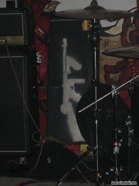 Dieser bedrohliche Koffer stand von Anfang an auf der Bühne, ich habe jedoch niemanden etwas hineintun oder herausholen sehen. Am Ende war wahrscheinlich wirklich eine Tommygun drin und wir sind nur durch eifriges Klatschen einem Massenmord entkommen!