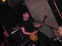 Ja, meine Fotos sind doof, dunkel und verwaschen. Mir egal. Hochglanz gibts bei Getaddicted. Auf diesem Bild kann man eventuell erahnen, was ich fotografieren wollte: Hauke (scharfer Bassist!) spielt nur mit 3 Basssaiten, weil die obere ziemlich am Anfang des Sets einfach mal so durchgerissen ist. Das ist Einsatz!