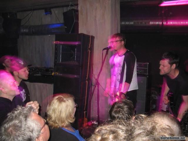 FRAU POTZ. Klar, die sind wirklich gut. Der Auftritt macht sogar einigermaßen Spaß, die Lieder sind gut genug verinnerlicht, um sie mitzusingen, 3-4 Leute starten sogar sowas wie Pogo, zumindest ab und zu, und ein klein wenig hilft das Konzert, über die Begleitumstände hinweg zu sehen.