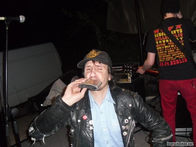 Abfukk bedienen ihre Anhänger erbarmungslos. Dann THE BOTTROPS. Hinten rechts Triple B, yo, schlechte Konzertvorbereitung. Irgendwas mit Technik und Gitarre. Grünschnabel, muss noch viel lernen. Vorne links, Martin, professionelle Konzertvorbereitung, irgendwas mit Flachmann und Jägermeister, souveräner Profi.