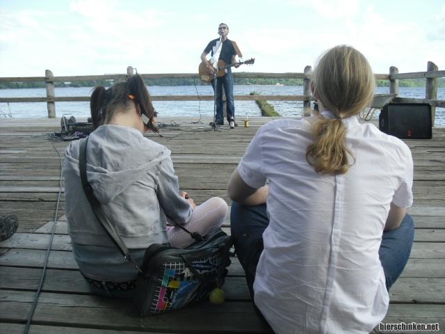 Wellensittich-mäßig einträchtig Binner hören vor schöner Kulisse mit Bier am Zahn. Schöner Tag!!