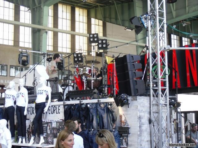 Ach Du Scheiße: Eine Band baut auf. Auf der Modemesse. Das kann ja nur der allerletzte Dreck sein. Schnell weg! Bevor die loslegen!