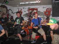 Zwei Covers haben sie auch im Gepäck, das erste müsste Boxcar von Jawbreaker gewesen sein, klingt logisch, der Bassist trägt ein Jawbreaker-Shirt. Das zweite Cover sagt mir nur vage irgendwas, keine Ahnung was es war. Vielleicht klärt mich noch jemand auf. Damit ist nach zwanzig Minuten der Auftritt auch schon wieder erledigt - hätte Flo nicht nach gefühlt jedem Song seine Gitarre gestimmt, wär es noch kürzer gewesen.