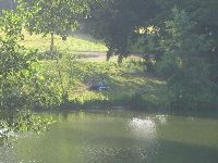 Hier noch ein Bild von letzter Woche Dienstag: Während wir draußen am Aasee bei bestem Wetter auf den Beginn des Konzertes warten, spielen am anderen Ufer zwei Typen Gitarre und Trompete. Über dem Aasee verbreiten sich die Schallwellen außerordentlich gut.