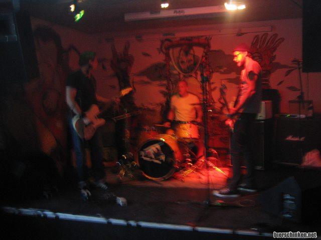 Die erste Band aber nicht, das sind Kraken aus Melle. Mein Insiderwissen, dass einer von denen heute Geburtstag hat, kann ich nicht mehr anbringen, da die Band demselbigen bereits vor dem ersten Song gratuliert. Naja, vielleicht kann ich noch damit punkten, dass der Bassist früher bei den Alternative Allstars gespielt hat, falls sich noch irgendwer an die erinnert.