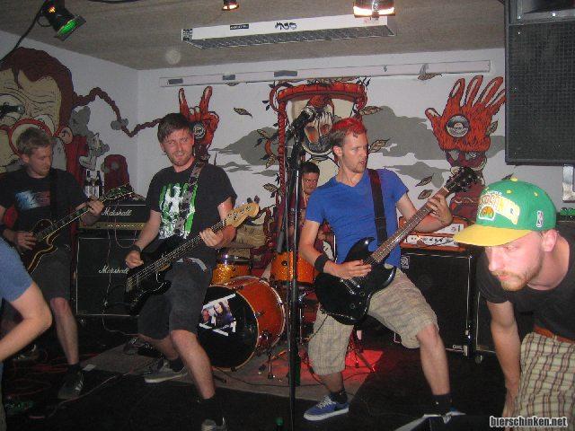 Er hier rechts im Bild ist der Roadie der Band und ihrer Meinung nach auch der beste Rapper der Niederlande. Solche und ähnliche Weisheiten werden in einer lustigen Mischung aus Niederländisch, Englisch und Deutsch ans Publikum weitergegeben, gelegentlich unterbrochen von Musik.