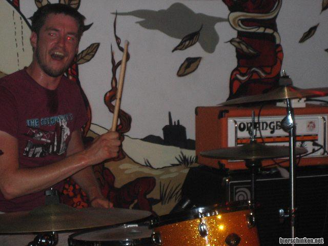 Drummerfoto. Lustig auch, dass eine niederländische Band diesen Orange-Verstärker dabei hat. Höhö. Orange. Oranje. Höhöhö.