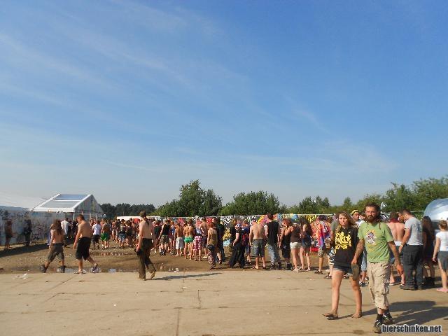 ...Und an der Futterstelle. Hier im Bild: Die Schlange zum eigens für dieses Festival aufgebauten Lidl. Zumindest die Hälfte davon, die noch aufs Bild gepasst hat.