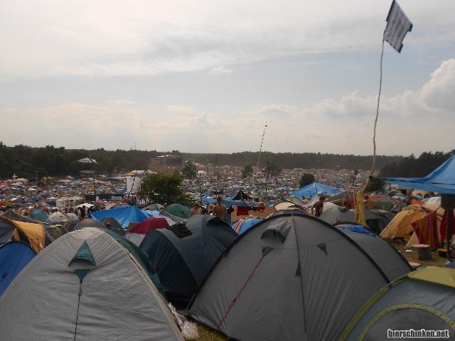 Vom Bahnhof mitm Shuttlebus zum Festivalgelände, welches schon am Donnerstag Morgen dermaßen überfüllt ist, dass unsere Zeltplatzsuche gefühlte Tausend Stunden dauert.