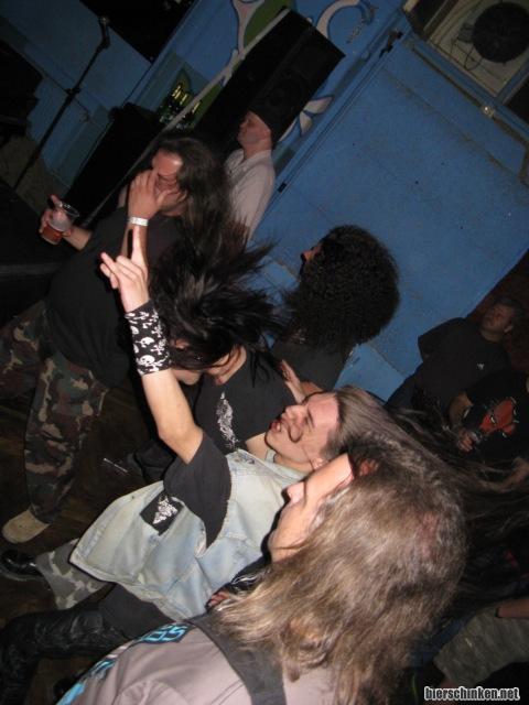 Publikum. Deutlich weniger los hier drinnen als zuvor, aber ein paar Langhaarträger feiern ganz ordentlich. Songauswahl geht in Ordnung. Als besonderes Highlight "South of Heaven" und "Raining Blood" direkt nacheinander verbraten. Herrlich! "The Antichrist", "Disciple", "Silent Scream" und weitere Hits prasseln auf die Meute.