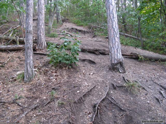 Der Abstieg etwas spektakulärer entlang eines steilen Waldweges, der zwischendurch auch von Downhill-Bikern genutzt wird und selbst zu Fuß ne Herausforderung darstellt. Aber hey, nach dem Slowakischen Paradies kann uns eh kein Weg mehr schocken...