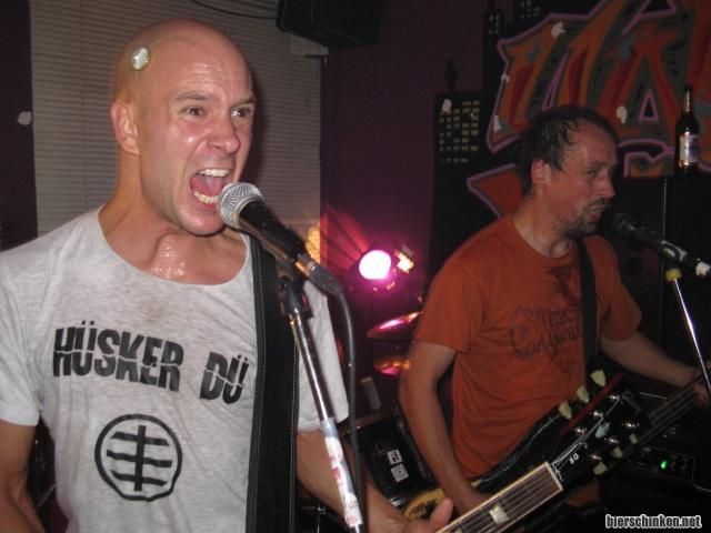 Ja doch, geil und kurzweilig. Die Protagonisten haben sichtlich Bock. Und Schweiß. Der Bassist macht sich nen Spaß daraus, seine Plektren an der Schweißrübe vom Gitarristen zu lagern, kleben da ganz gut! Hier nicht im Bild (um die Ecke fotografieren kann ich nicht), dafür stellvertretend ein Kronkorken. Achja: Nen spontanen Coversong gabs auch noch, "Reeperbahn" von Neue Katastrophen (Publikumswunsch)