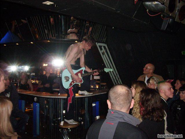 Jancee erklimmt Tresen, Hocker und alles was gerade zur Verfügung steht. Sogar im Klettern fließen diesem Kerl die Surf- und Rock n' Roll-Stücke nur so aus der Hand. Beeindruckend, mit welcher Leichtigkeit - zumindest hat es den Anschein.