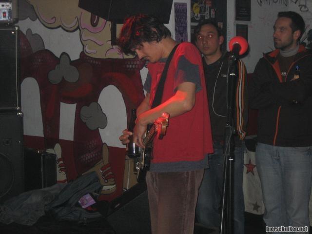 Kurz nach 21 Uhr fängt dann auch die erste Band an, wilden Krach auf ihren Instrumenten zu machen, u.a. durch Bierflaschen. Das nennen die wohl ihr Intro.