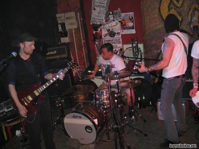 Dazu kann ich nur sagen: Jau, stimmt. Ist auch gar nicht so glammig wie befürchtet, klingt auch schön nach Straße und lebt durch konstant durchgezogenes Tempo - aber das mit den Melodien hat die Band echt drauf, Hut ab. Einfluss skandinavischer Rockbands ist nicht von der Hand zu weisen. Texte, soweit verstanden (ich bin mal wieder überrascht über den echt guten Sound im Wageni), alles andere als unpeinlich.