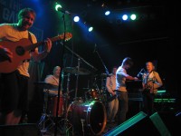 Von diesen acht Leuten spielen zwei Gitarre. Schon erstaunlich, wie wenig Druck dabei rumkommt - das gleiche gilt fürs Schlagzeug, da ist ein zweiter Drummer am Werk, der mit Stöcken auf Bongos trommelt (oder so ähnlich).