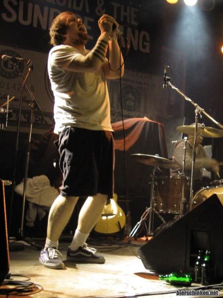 Rest des Publikums: Eher verhalten. Acht Leute auf der Bühne, die offensichtlich Spaß haben an dem, was sie tun. Zwischenzeitlich setzt sich einer ans Klavier und lässt irgendne Super-Mario-Melodie in den Song einfließen - Bestes Lied bisher.