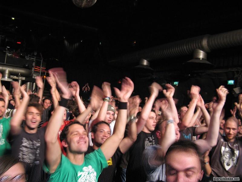 Das Publikum (übrigens sehr hohe Quote an Regel-Eins-Verstößen, dafür höherer Altersdurchschnitt als erwartet) macht richtig Dampf. Wir als arbeitende alte Männer stehen natürlich hinten am Rand, aber der Rest der Meute legt ne ziemlich flotte Sohle aufs Parkett.
