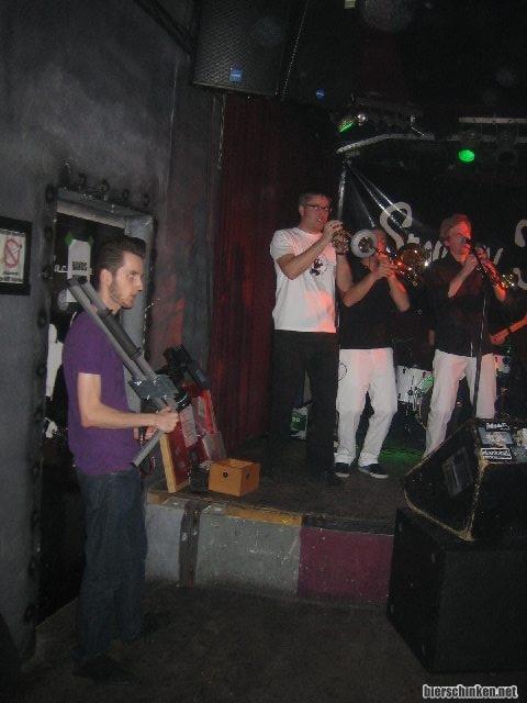 Haben auch ein paar mitgereiste Fans dabei (Lingen ist ja nicht weit). Der Herr im lila Hemd filmt aber die Szenerie nur in Momenten, in denen maximal zwei Leute vor der Bühne stehen und sich bewegen.